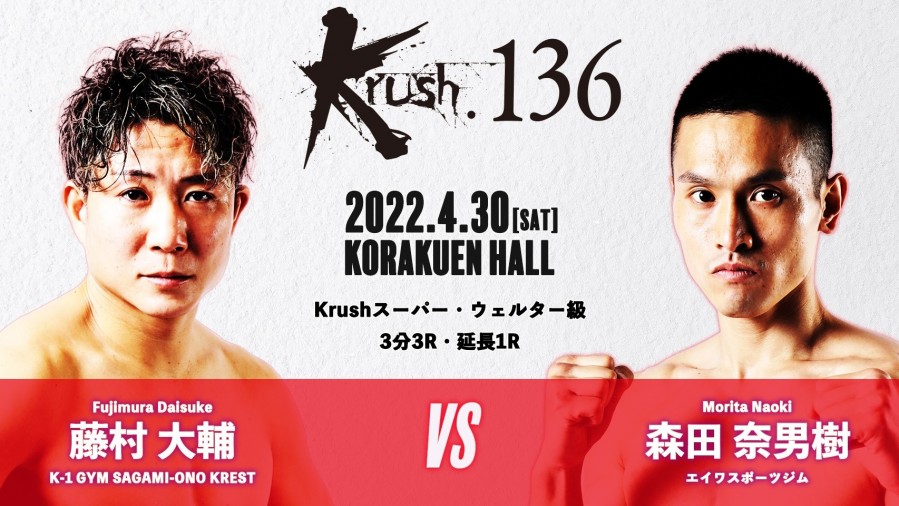 森田奈男樹選手が4月30日(土)にKrush.136へ出場します 2022.03.11