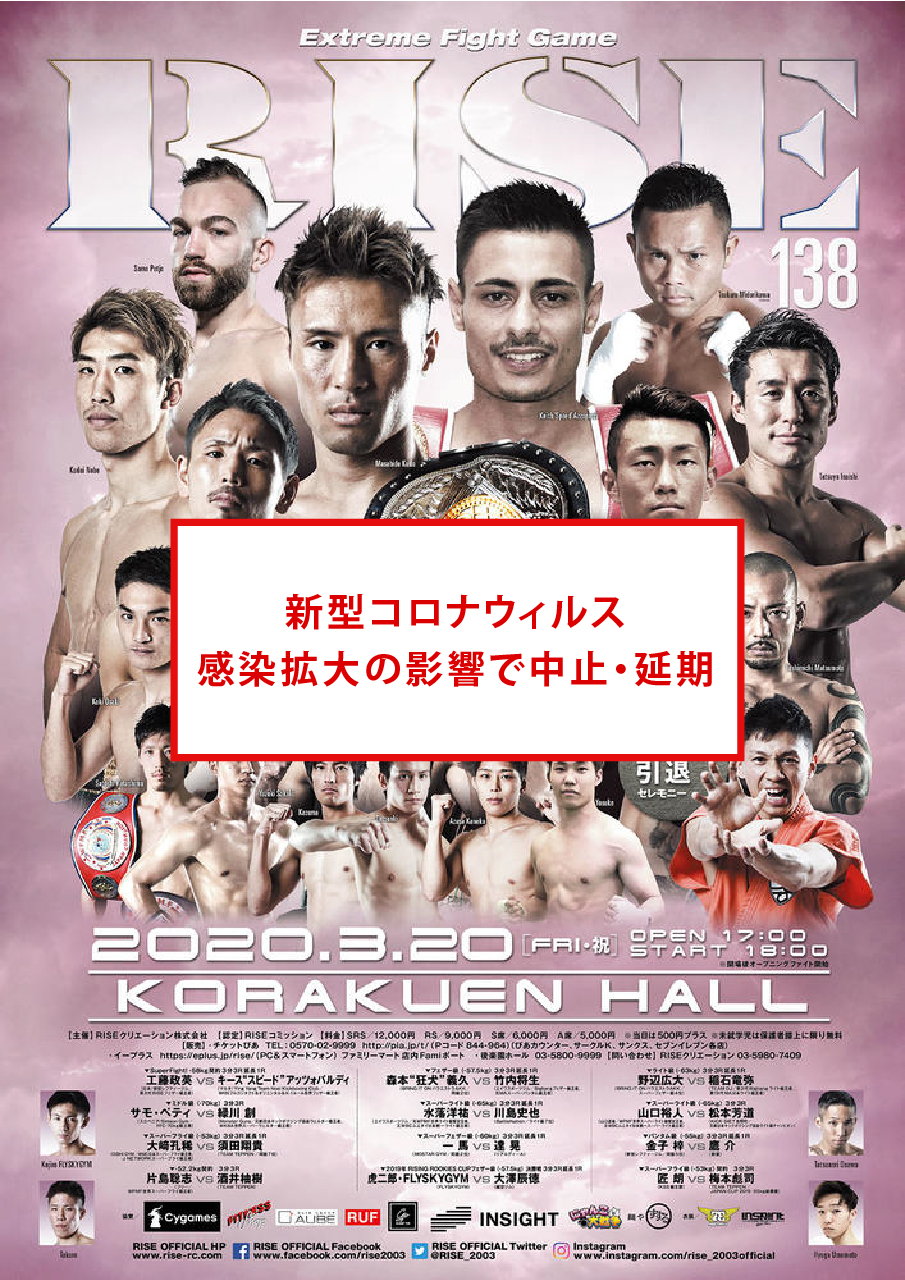 【RISE】3・20後楽園ホール大会の中止・延期を発表、新型コロナウイルスの感染拡大状況や政府からの要請を鑑みて 2020.03.05
