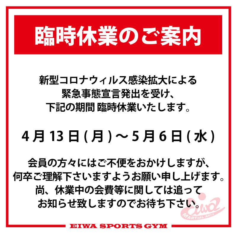 臨時休業期間延長についてのお知らせ 2020.05.06