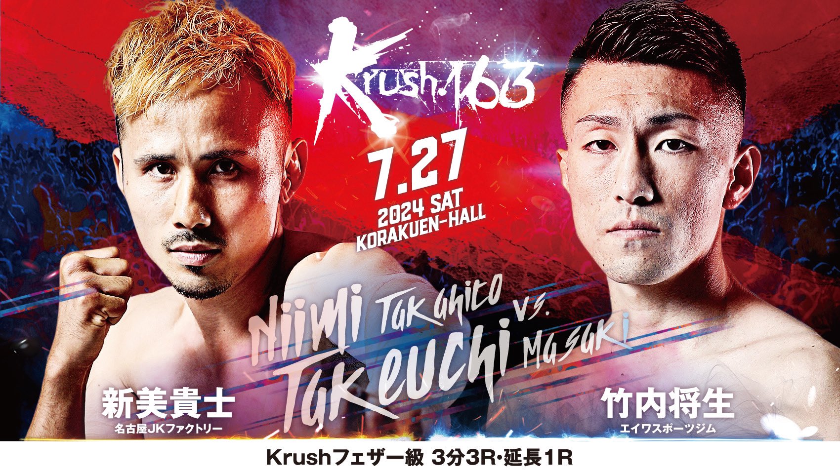 竹内将生選手が7月27日(土)にKrush.163に出場します! 2024.07.03