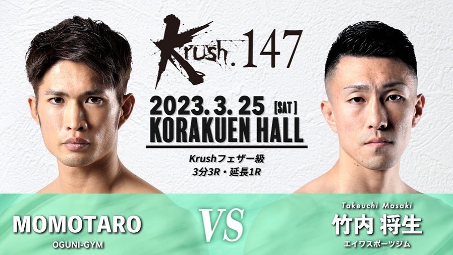 竹内将生選手が3月25日(土)にKrush.147に出場します! 2023.02.22