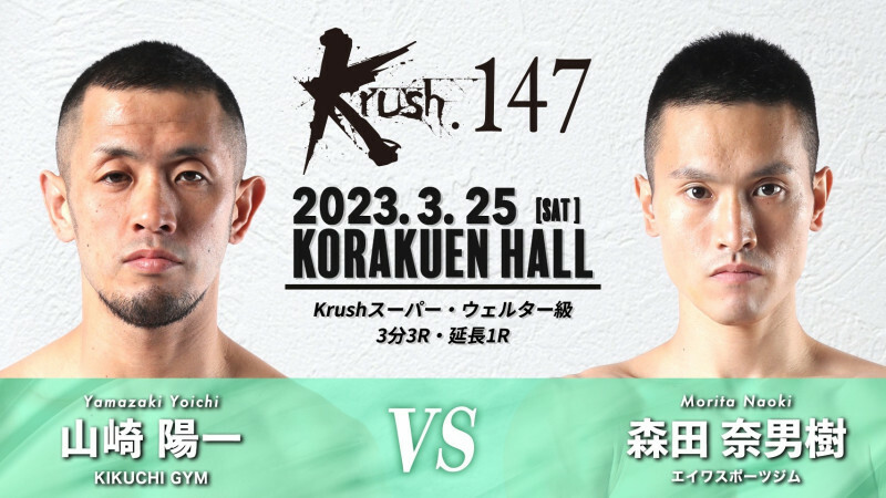 森田奈男樹選手が3月25日(土)にKrush.147に出場します! 2023.03.08